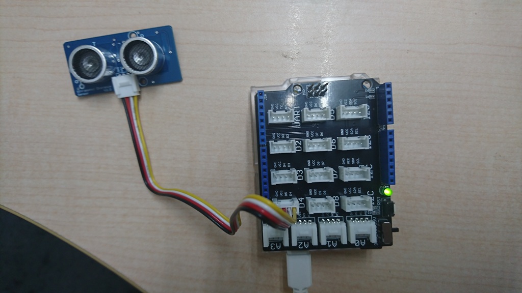 Grove超音波センサーはデジタルポート(今回はD4)に接続して使用します。